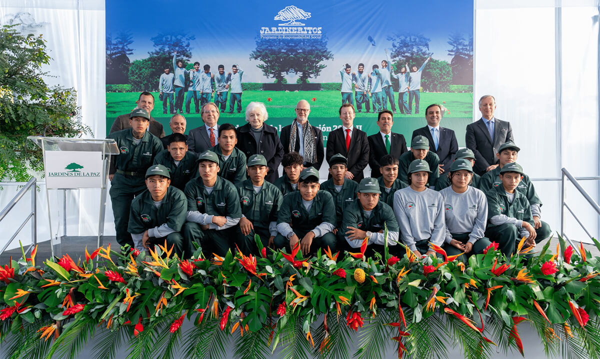 La graduación de la promoción 2023 II de Jardineritos y la bienvenida de la promoción 2024 I se llevó a cabo el 05 de junio de 2024 en la Plaza de las Banderas del camposanto Jardines de la Paz La Molina. En esta emotiva ceremonia se graduaron 11 jóvenes como Jardineros y recibimos 17 nuevos Jardineritos. La recepción contó con la presencia de Lord George Windsor, Conde de Saint Andrews, el embajador británico Gavin Cook, el alcalde de La Molina Diego Uceda. Programa Jardineritos Jardineritos es un programa de responsabilidad social empresarial que se viene realizando en Jardines de la Paz desde el año 2022, con el apoyo de la ONG Cedro y el Británico. Fue concebido con el propósito de brindar las herramientas necesarias para que jóvenes socialmente desfavorecidos, en situación de riesgo y vulnerabilidad, logren su inserción social y laboral mediante la práctica de la jardinería.